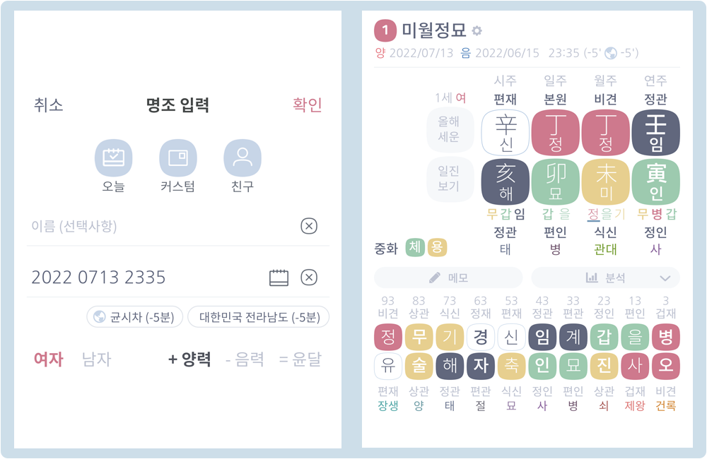 그렇다면 정확한 사주팔자를 산출해내기 위해선 어떻게 해야할까요?